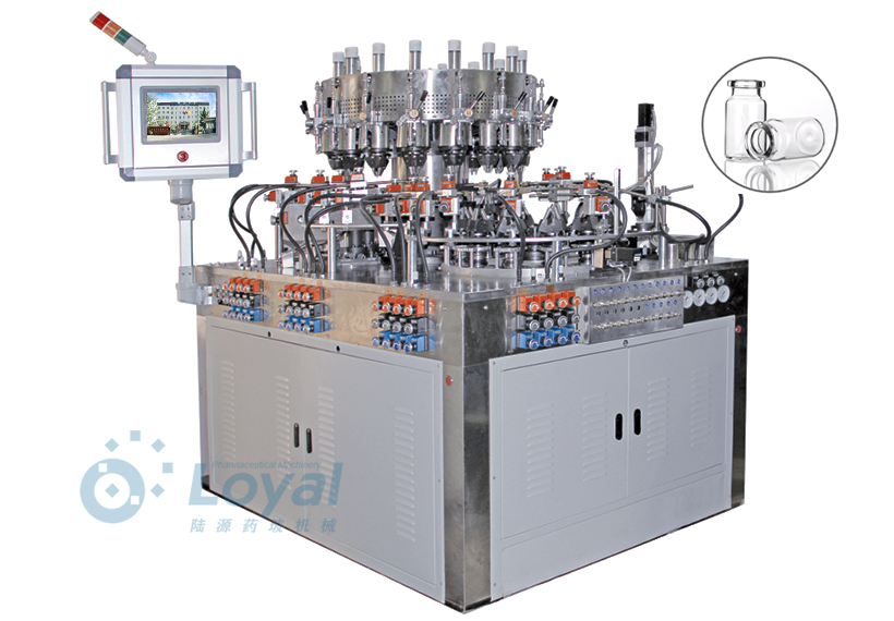 西林瓶生產線包括:自動上管、自動成型、經機械手轉換至前端檢測線(也叫生產管控)、檢測線檢測的項目:1、瓶口內外徑 2、瓶身長短 3、瓶身外徑 4、瓶口邊厚 5、瓶底內凹尺寸檢測;經檢測后的合格品再用機械手夾盤轉換至退火爐網帶上,經高溫減除應力后再降溫,通過氣動吸盤將回火后的小瓶轉換至后端檢測線,后端檢測(也是重檢也叫終檢),經后端拍照檢測項目